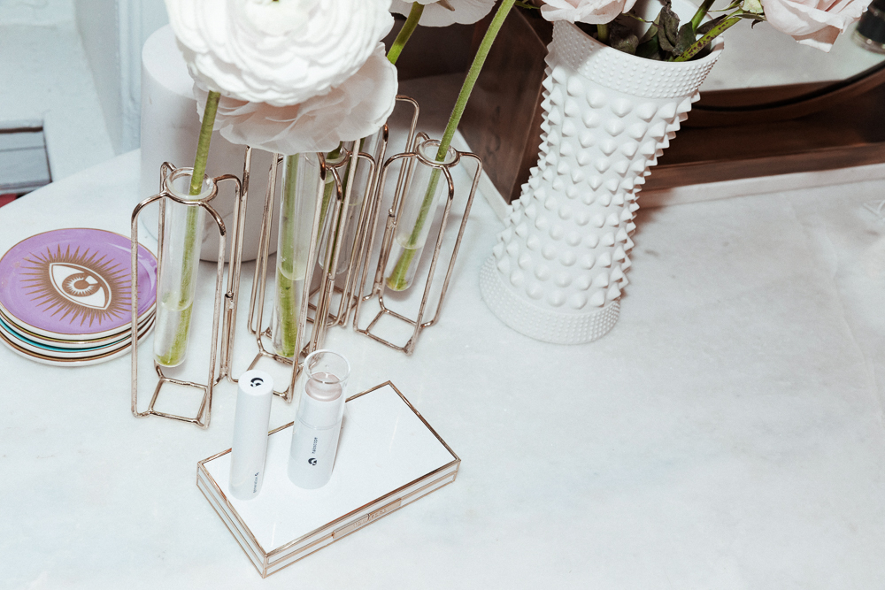 I’m probably more of an oil person than I am a classic moisturizer person. Right now I use Amorepacific or Herbivore’s Lapis Oil. When I need a lot of hydration I might use Luna Oil. Usually just whatever’s there is what I’ll put on. Whether you use a jade roller, a gua sha, your fingers—any stimulation is good. It helps to stimulate collagen, it helps to tighten, it helps overall with blood flow, lymphatic drainage, all of that.