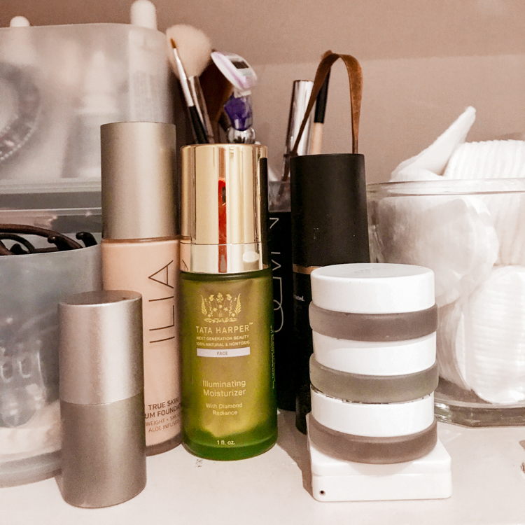 Unless I’m working on a shoot or interviewing someone, my day-to-day makeup is pretty low key. I recently got rid of a lot of my products and am now a proud owner of a purely natural and non-toxic makeup routine. Most days, I use RMS “Un” Cover-up in 11 and their Living Luminizer highlighter. ILIA’s Multi-Stick in At Last on my cheeks is the perfect blush. Then I do a few slicks of RMS Volumizing Mascara, too. For nights out or special occasions, I’ll mix a bit of ILIA’s True Skin Serum Foundation in Tavarua with Tata Harper’s Illuminating Moisturizer (this stuff is expensive, so I use it sparingly) and a pump of my serum from Victoria. Then I’ll do a bit of a smoky eye with a combination of RMS Eye Polish in Myth and their Swift Shadow in Tempting Touch. Throughout the day I’ll spritz chamomile water all over my face to keep my skin fresh and under control—my God, it feels nice.