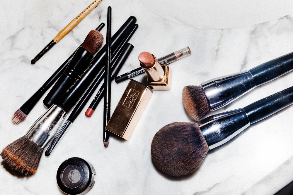 When I started to do more photoshoots is when I got into cream contour sticks. I use a cream contour from Bobbi Brown on my cheekbones, and over that I use a MAC powder to stay matte. When I’m just running around, I’ll wear an oversized hoodie, white Air Force One’s, and all the diamonds, but no makeup. Just this By Terry lip balm, and definitely some amazing sunglasses.