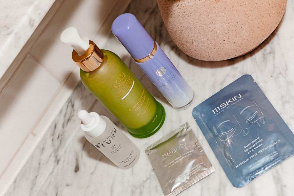 I kind of have two routines—the quick one when I’m half asleep getting my kids to school, and then my more luxurious one during nap time. That’s when I’m running the bath, playing 'Hamilton'… [Laughs] Usually I’ll get up, brush my teeth, put deodorant and moisturizer on, and get my daughter to school. When my son goes down for his 9 o’clock, I’ll redo my skincare. I start by taking my makeup off because I’m usually too lazy to do it at night. I’ll either use Burt’s Bees wipes or these gorgeous coconut wipes from RMS, which are better if there’s a lot of makeup. Then I’ll use Tata Harper’s scrubby cleanser, and take it off with a warm towel. After that, I use Tata Harper’s Brightening Essence on a cotton ball, which takes off any leftover dirt and makes my skin shiny, and then maybe a vitamin C serum from Kora Organics. Miranda [Kerr] is one of my best friends, and she was teaching me about organic and natural things like, 15 years ago. Then I use Tata Harper’s Repairative Moisturizer, or the Crème Riche at night, which I keep next to my bed. I’m not trying to sound like a Tata Harper ad, but I really love her line.