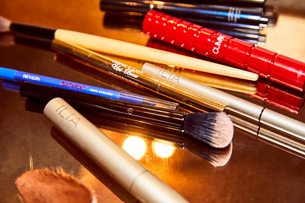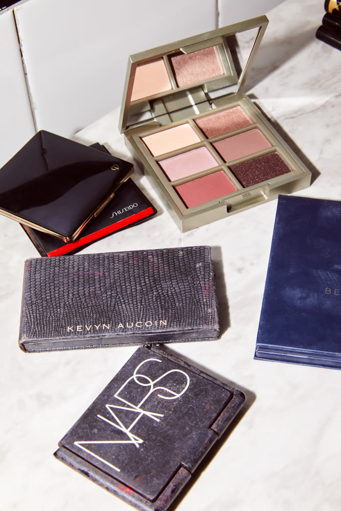 I probably wear eye makeup every day. I’m really into the Romantic Palette from Beautycounter and the Cool Nude Palette from Ilia, and I’m always a Nars girl. On my top lid, I use Stila Stay All Day liner, or Shiseido Archliner, which I love because it kind of tips forward so you can draw the line on at a better angle. I end up using the Revlon So Fierce pencils on my lower lid, because they’re cheap and easy and I can have a million of them. Then I curl my eyelashes with a Surratt lash curler and use mascara. I usually use Nars Climax, but I also use mascara from Ilia, and Stila, and Shiseido because I can’t tell the difference. Not that there is no difference! I’m just not smart enough to notice it.