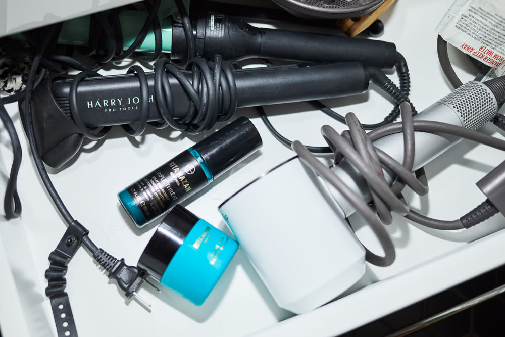 I have a lot of concerns about hair loss—I don’t have any products to reflect that, but I’m just telling you, I’m concerned. Rita Hazan cuts and colors my hair, but I don’t go as often as she wants me to because she makes such great products that keep my hair color good for longer! Mon Shampoing is a French brand that’s supposed to be customized, but I like it because it just smells really good—kind of like Lenor Greyl. I use the Christophe Robin scalp scrub once a week, and I also do the Rita Hazan Weekly Treatment. Then, when I get out of the shower, I put my hair in an Aquis towel and dry it with my Dyson. I like to use the Rita Hazan balm when I blowdry my hair, because it gives some weight and hydration to my ends so my hair’s not so floaty. But you can’t use too much, or your hair can get heavy. The most I can stretch a wash and blow is three days, but when I need it I’ll use Bumble and Bumble’s Pret a Powder.