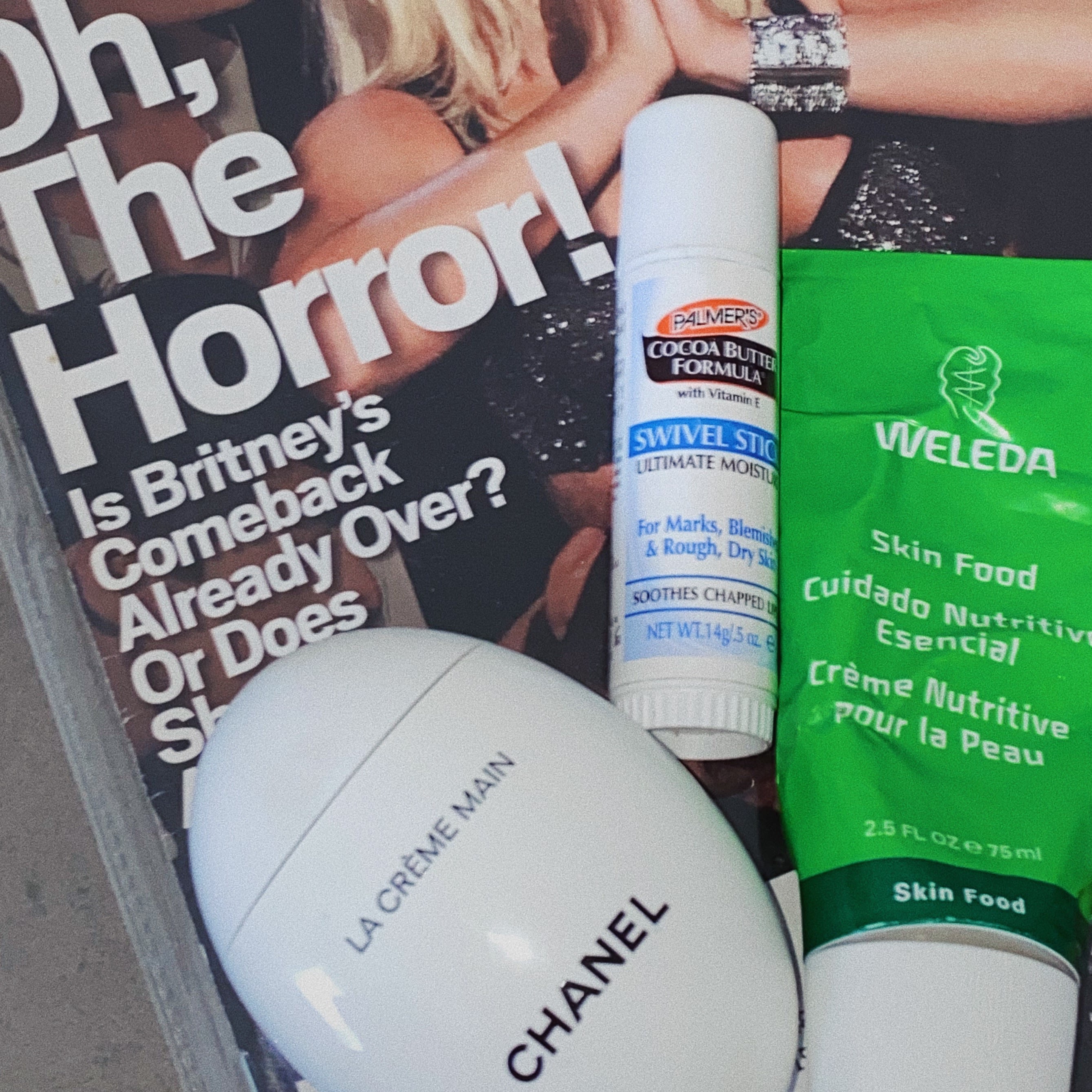 For highlighter I use Chanel’s Baume Essentiel in Transparent with my finger. It’s the best highlighter I’ve ever used. It has a balmy, wet finish, which I prefer over a pearly finish. I’ll top it off with Anastasia Beverly Hills Dewy Set setting spray. It makes everything melt together and smells like what I imagine Britney Spears smells like (vanilla). I’ll use it even if I just have moisturizer on.