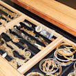 I was a silver person growing up, definitely because I lived on the border of Mexico but also because it was less expensive. And then I would do a lot of antique shopping, and started to mix gold and silver. Mixing metals has to feel intentional. I’m still crazy about eBay, and vintage shopping. You can get very similar looking ones chains to the ones I’m wearing that are Victorian watch fobs. The difference is they’re nine karat or they’re hollow, so they don’t have the weight, but visually they’re really great.