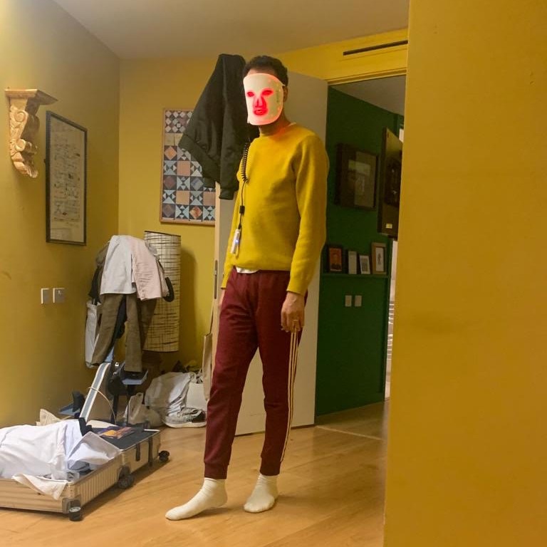 Lunch needs to be as mindless and un-distracting as possible, but I always make dinner extravagant because cooking is my therapy. I’ve also been doing 10-minute treatments with an LED face mask from The Light Salon, which I definitely find mood-enhancing. My aim with it is to look young enough to get ID’d... whenever we’re able to go out again. I’ll usually tone with Biologique Recherche’s P50, but I’m out right now so I’m using Carbon Theory’s Purifying Tonic which I like so far. I’ll use BR’s Sérum Colostrum under my eyes for hydration, and then finish with the Verso Retinol Night Cream.