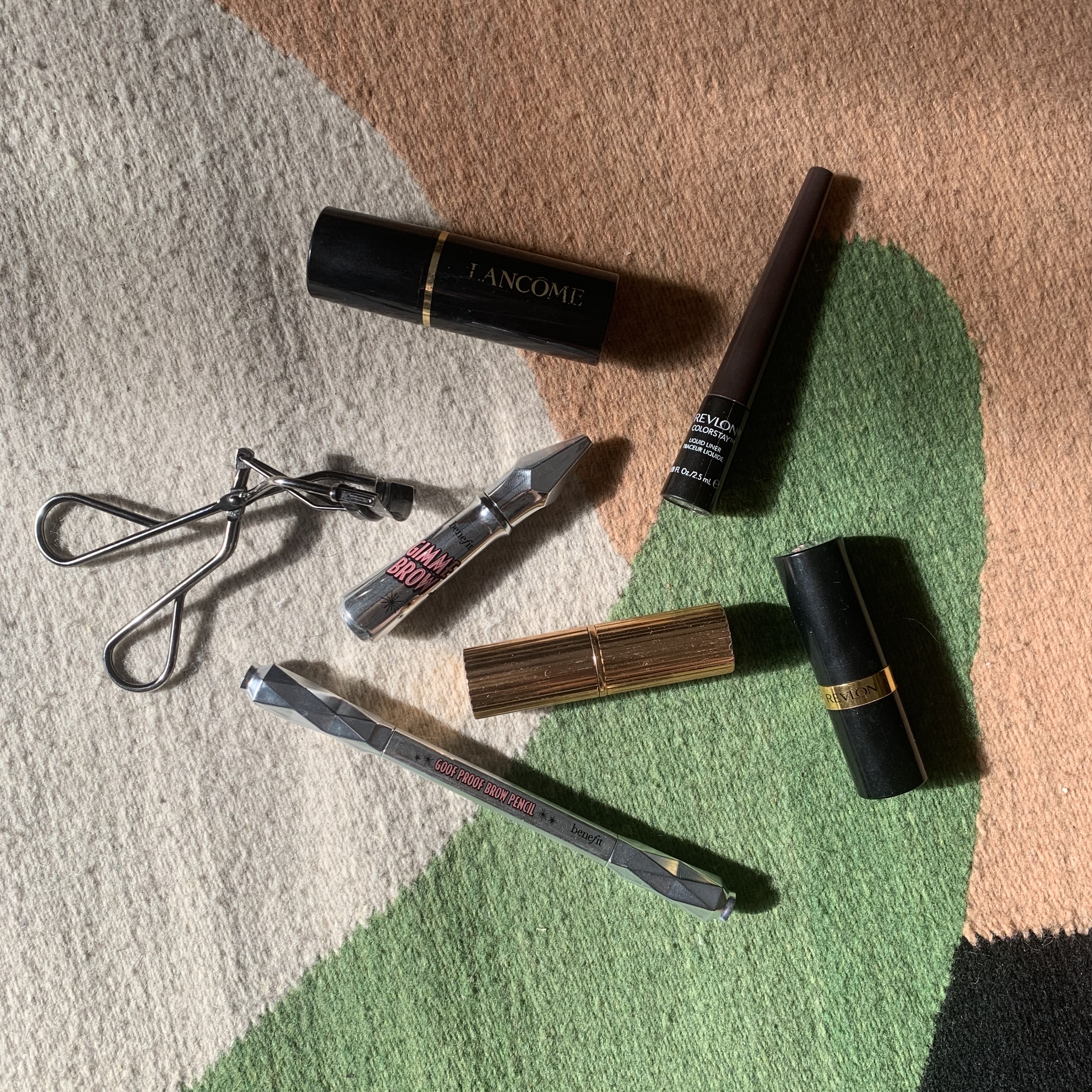 After searching high and low for the right natural brands to replace my usual makeup shades, I’ve yet to find anything that quite measures up. Some sacrifices must be made! For the past eight years I've worn the same lip color almost every day, and at this point it feels more like my lip color than my actual lip color. First, I apply Lancôme's foundation stick to neutralize my natural color, and then I follow it with Revlon’s Va Va Violet, which I apply with my finger and blot off with tissue. It’s a deep dark purple, but with the way I apply it, it ends up looking like a very lowkey berry hued lip stain. I add a light dab of Charlotte Tilbury’s Secret Salma to the center to finish, and voilà! For my eyes, I like to draw a slight wing with Revlon’s liquid liner in Black Brown. Black eyeliner always ends up looking blue on my skin, so I always opt for something warmer instead. I used to be into lash extensions, but found that I much prefer the freedom and comfort of an extension-less lid. Now I give my lashes a quick curl with a Shiseido eyelash curler instead, which works so well I don’t even need mascara. I haven’t tweezed my brows since I was a teenager and don’t think I ever will again. To enhance them, I use Benefit’s Gimme Brow gel, which has little fibers in it for a natural, filled-in effect.