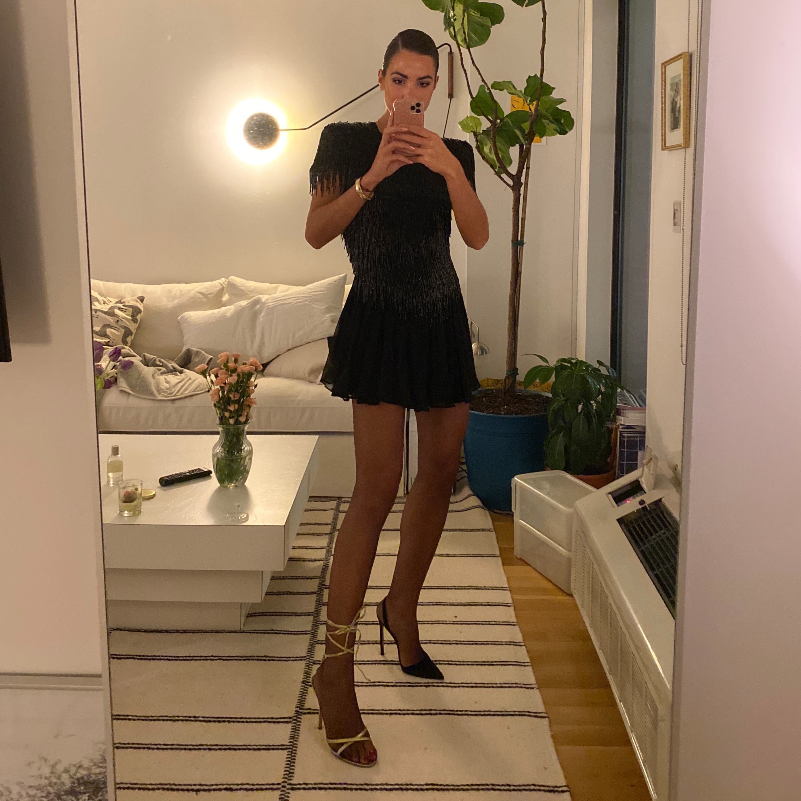 I focus on what I’m going to wear in the morning more than I ever would on makeup or hair. For the most part I only buy vintage. It’s more sustainable, but I also love knowing that there is only one of whatever I have and somehow it landed in my hands. I spend hours on the internet looking for gems—I’d describe my style as something tight somewhere, and have some finds I’m very proud of. I wore an orange chiffon Roberto Cavalli gown from 1999 to my sister's wedding, which is probably my favorite. The one that got away was a Vivienne Westwood dress I favorited on 1stdibs. After it sold, I saw that Kim Kardashian wore the same dress to Diddy’s 50th birthday party. I should have bought it.