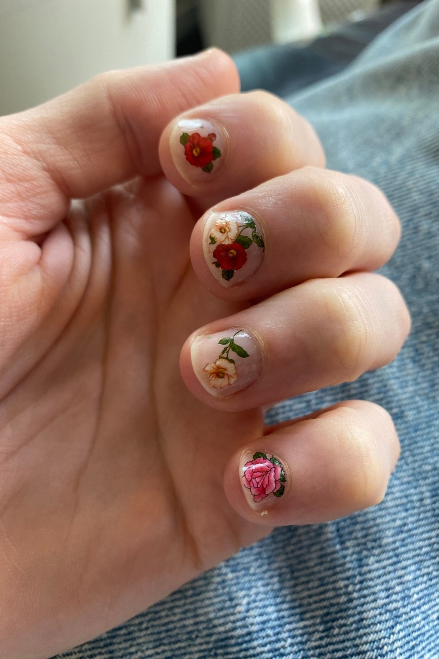 Two and a half months ago, I was on the couch watching Below Deck when my roommate pranced over with her nail kit and began her weekly nail ritual. It was a balletic ceremony of perfectionism—every move was so sublime. I was particularly floored by a stack of cute little symbols and flowers, which she told me were intricate nail tattoos. There were incredible, ethereal looking flowers and butterflies, but for me, the portraits took the cake. Vermeer, da Vinci, Monet—she had the Louvre literally at her fingertips. The set came with tweezers so she could artfully place each in the perfect position, and one top coat swipe kept the tattoos in place for about a week. It might sound silly, but it felt like a veil was lifted from my eyes. My nails weren’t a burden, they weren’t shameful—my jagged little nubs were a creative opportunity. That is the moment I stopped biting.
