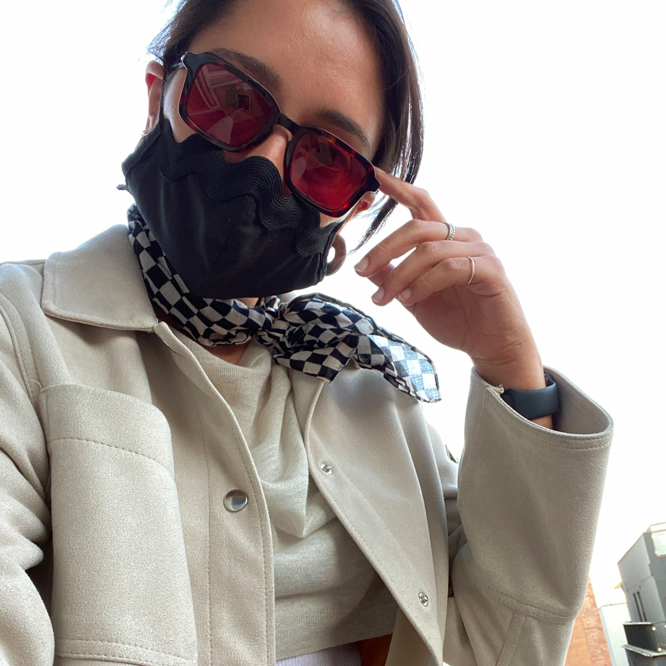 To relax, I love to read—preferably outside and without my phone. Right now I’m reading Conditional Citizens by Laila Lalami, which so far I’d strongly recommend, especially if you were born outside of the US like me. If I’m out, I love to wear a protective face mask from Piatori. They’re an incredible Miami-based brand that I learned about through a volunteer at Work the Polls. Seven months into the pandemic I finally found my mask match! They’re so my style and so comfortable. I can’t wait to wear mine when I’m working at my polling site on Election Day. And honestly, I’ll probably never enter a dusty construction site without one again.”
