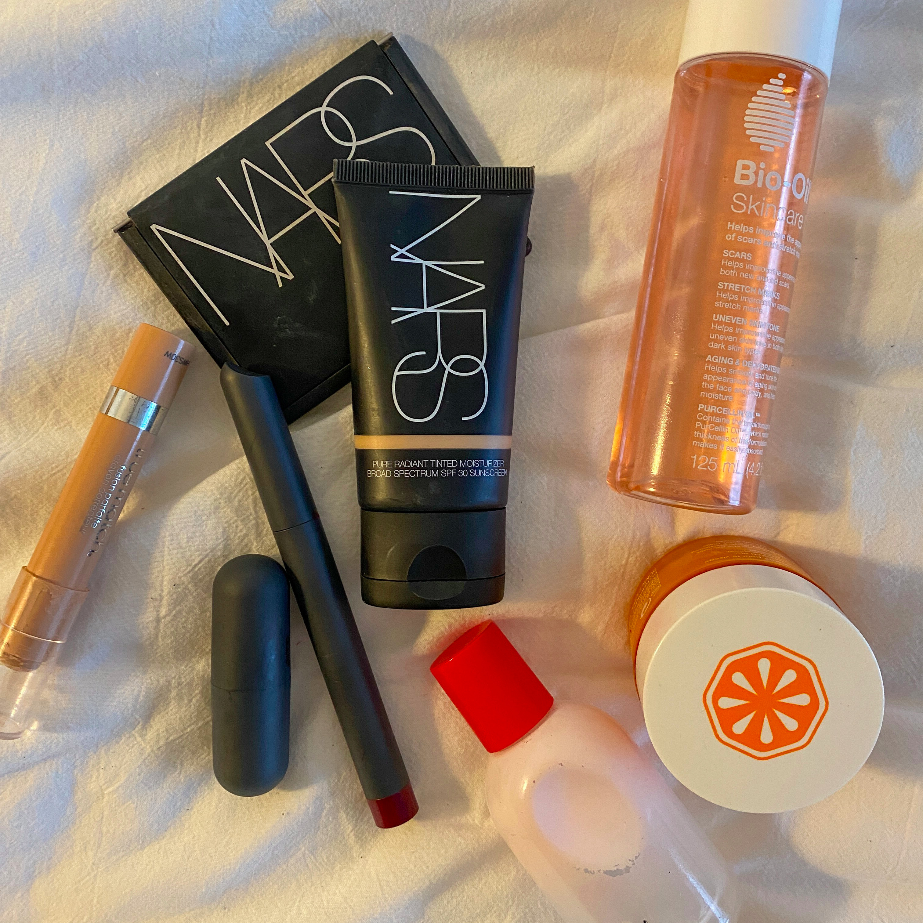 In the past few months I’ve been spending so much time solo and indoors, so I’ve definitely pared my makeup routine down. On a typical day, I pat L'Oréal True Match Crayon Concealer in Light/Medium around my eyes and use Nars Tinted Moisturizer in Alaska. Then, I brush my brows with Boy Brow in Black, tap on Cloud Paint in Storm, and apply some Lashslick. I top it all off with Nars Laguna bronzer on my cheeks and Bite’s Agave Balm on my lips. My perfume is actually my most ‘signature’ product—I’ve worn Glossier You every day since it launched. I love that, more often than not, people don’t ask what perfume I’m wearing and instead just say, ‘You smell good.’