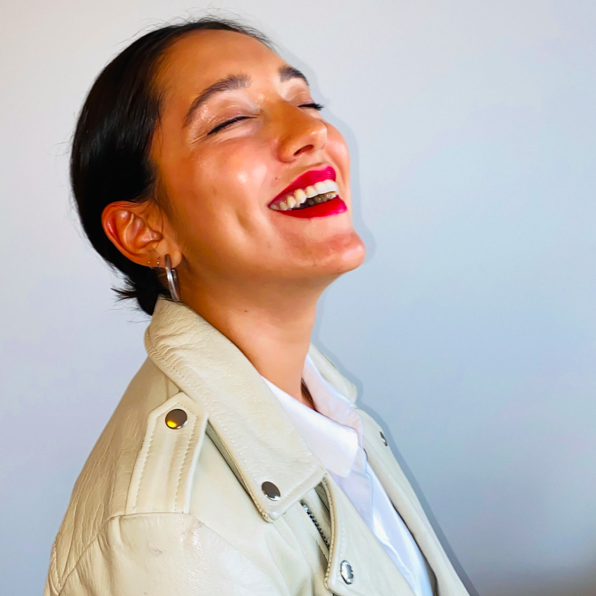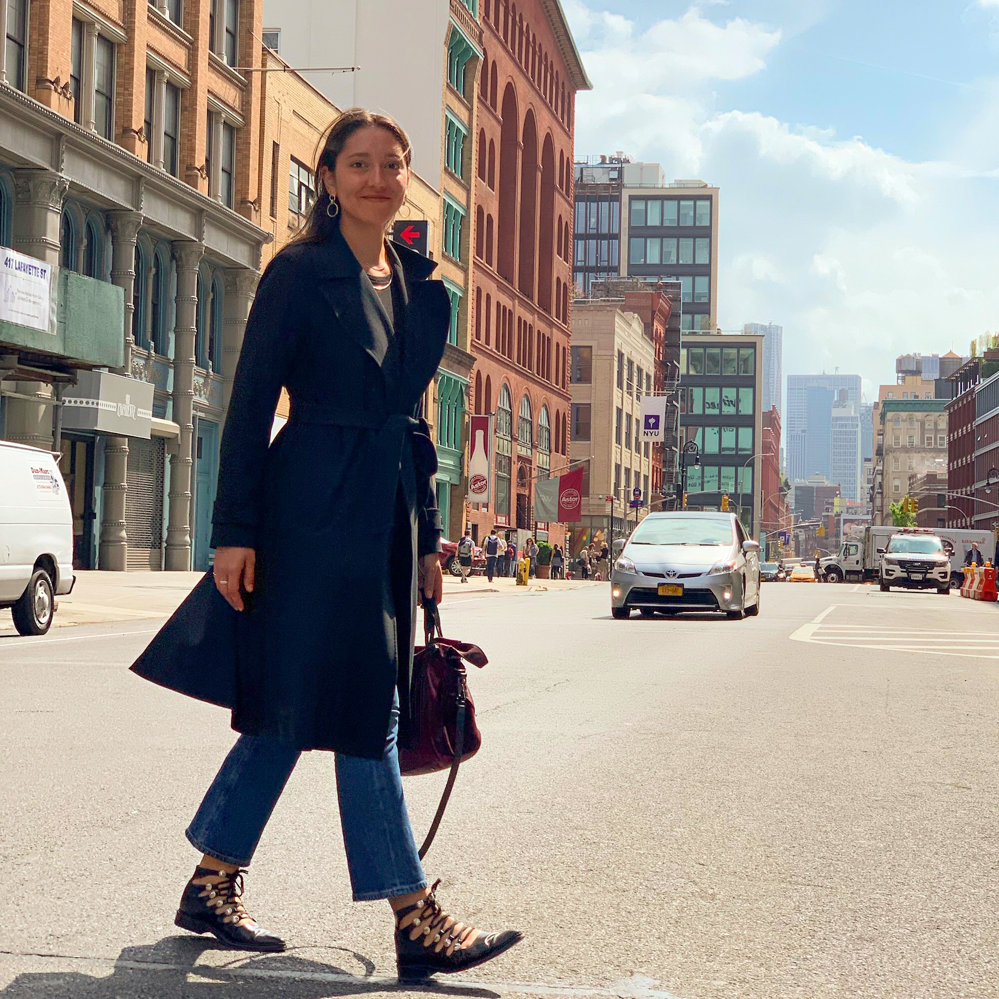 One of my favorite one liners to drop in a design meeting is, ‘There is no such thing as timelessness.’ What I mean is that the projects we revere as timeless only seem that way in retrospect because they capture the time they were created in so specifically. It’s not about stopping time, it’s always about best capturing the moment. I like to carry that same attitude into how I think about beauty. My everyday beauty is about taking care of my largest organ, my skin. And then my ‘capture the moment beauty’ is an accessory, or a lil’ fashion moment. Sometimes that’s a red lip (my favorite is Bite Beauty’s Power Move Lip Crayon in Pavolva) but usually it’s an actual accessory. When I find an accessory I love, I tend to stick with it for a long time. My mom taught me to be mindful about shopping—we used to go to Bloomingdales for ‘inspiration shopping,’ as she’d call it, and then hit up Forever 21 to find the best value version of what caught our eye. Now, my favorite place to shop is East London, hands down. I lived there for a year in 2017, and my closet hasn’t evolved much since. I love my chunky loafers from Goodhood, checkered handkerchief and red shades from Crap Eyewear, plaid trousers, smart button downs, and bright blazers. Developing confidence in my own style is forever a work in progress, but I’m grateful the apple didn’t fall far from the tree in that department.
