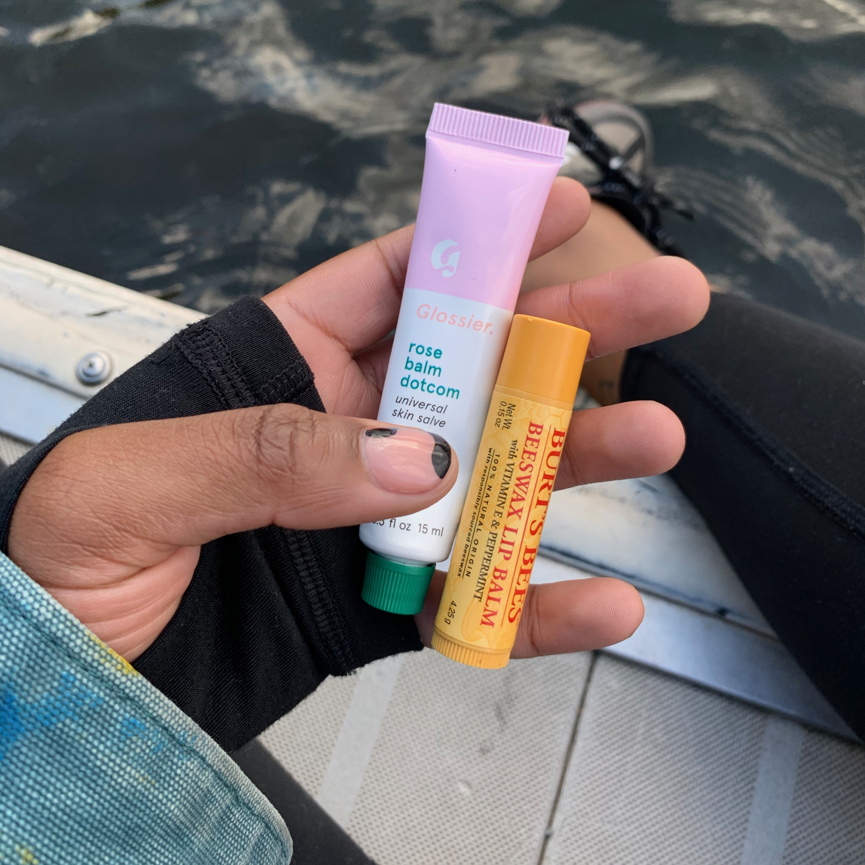 My Get Out the Door routine starts with a beautiful eight-minute shower. I use Dove Sensitive Skin Beauty Bar to wash my face, drown myself in Keri Lotion, and apply the Blemish Control Booster and Signature Moisturizer from Rose Ingleton MD Skincare. I discovered that brand over quarantine when Amanda Murray did a Instagram Live with Dr. Ingleton—supporting a Black woman in the beauty space is top of my list, and now I’m hooked on the product. To style my hair, I use the Rosemary Mint Strengthening Edge Gel from Mielle. The brand was founded by a Black woman named Monique Rodriguez, and this stuff smells amazing, doesn’t flake, and lasts through an eight-hour day. For everyday, I apply Bobbi Brown’s Skin Foundation SPF 15 in Cool Almond over their Primer Plus Mattifier, and swipe on some Glossier Lash Slick. Then I throw on some Rose Balm Dotcom and head out the door.