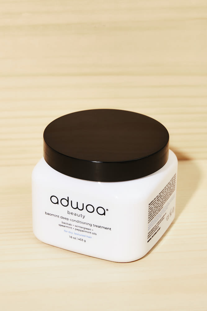 Ever try preparing dinner for two picky children? You wish you could just feed them the same thing, but one hates vegetables and the other’s a vegetarian. Haircare is like that, too. Adwoa’s solution: load up a hydrating mask with scalp-stimulating mint oils alongside nourishing ones like coconut, baobab, and prickly pear seed. While the latter group gets to work repairing damaged strands, the former clarifies the scalp. (For once, the tingly sensation really does mean it’s working.) And after a rinse, both lengths and roots are happier.