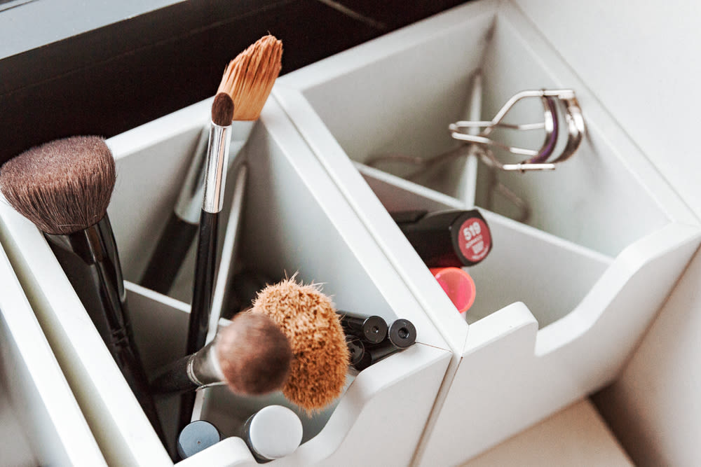 Remember Legos? They always gave you the exact amount of little plastic blocks you needed to make the picture on the box—no more, no less. But somewhere between the ages of six and up we become obsessed with having extra. Just in case. Buy a tool kit with three sets of pliers you'll never use. Hit pan on half a palette without touching the other shades; in the kitchen, chef's knives get all the action. It gets really crazy when you think about makeup brushes. A set may come with 20, when you probably only need one or two.