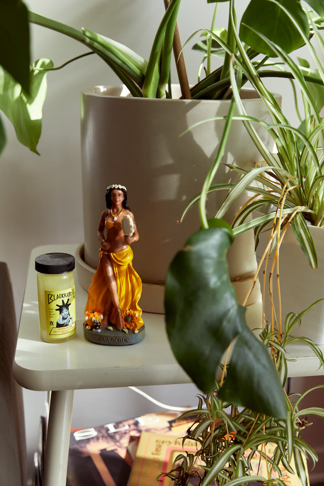 Out of the shower, I do my skin routine. Making sure my skin looks great sometimes feels like the only thing I can somewhat control. I use the Dermalogica powder scrub, which is good for daily use, and then I use a rose water toner from Mario Badescu. Depending on what I’m about to get into, I have a couple different oils I choose from. If I’m just going to be at home, on Zoom calls, and annoyed, I put on Outer Space by Tonic. That’s a face oil with rosehip and CBD—it’s super amazing. The other CBD face oil I like is the one from Kiskanu. The founder, Gretchen, is a white lady, but I fuck with her because she realizes that her whiteness can be used to help others. She’s a great advocate for Black and brown folks. If I’m going to do my makeup, I use the Tata Harper priming oil. It feels like silk on my face.