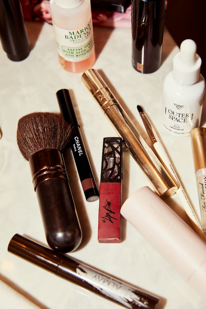 For my brows I use Benefit products. If I have a minute I like to use Precisely My Brow and Gimme Brow. Those have been the best ones for me. I used to use Brow Zings, but I never have time for that one. The one I end up using the most is Ka-Brow, which is an eyebrow cream gel. You can modify how heavy you want it to be, from a light brow to an intense brow, and it looks really good across the board. I only do heavy eyes for nighttime. My eyeliner of choice is from L'Oréal, the liquid one with the gold top. I can’t use pencil eyeliner. When I use pencil eyeliner, it looks like I'm a five-year-old trying to draw their family. Then I'll use mascara real quick, usually the Extreme Dimension 3D Black from MAC, and some type of lip. I have a clear Lip Bar product I use if I don’t want to use a color, and otherwise I do a strong red. I always have Bawse Lady in my bag, which is a liquid matte. Lip Bar’s founder, Melissa [Butler], is from my city. I love her immensely. When I do a strong red lip I also draw on a fake beauty mark with eyeliner—I put it on my right side between my nose and my lips. I just love doing that. Sometimes people are like, ‘Wait, have you always had that?’ Which lets me know they’re an idiot and that they don’t look at my face. [Laughs] It’s kind of a litmus test.