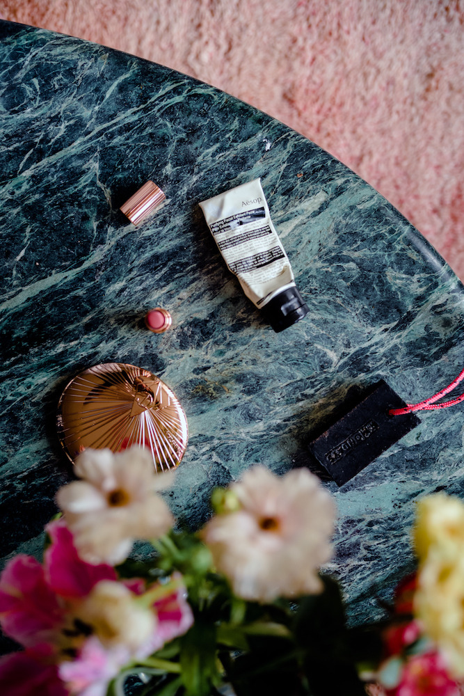In the morning I put on the Drunk Elephant C-Firma serum, which I think tans me a little. Because I’m Australian, in my head I’m always meant to be tanned—I can’t be pale with a thick bogan accent! The Amanda Harrington Bronzing Mist is actually the best for that, and the Vita Liberata Phenomenal Organic Tan Infused Cloths are also great. When I want a quick tan that nobody will notice, I’ll pop one of those on. Then I use the de Mamiel Exhale Daily Hydrating Nectar, which has SPF. It’s so funny, because Joel needed some sunscreen when we were in Australia, so I gave him a little bit of that. He kept saying that his skin looked so good, and I didn’t have the heart to tell him that was because it has a tint. When he asked for more after that I was just like, ‘Sure, here you go bud!’ I also put a little bit of de Mamiel’s Altitude Oil under my nose, or the Tata Harper Aromatic Stress Treatment, and use Caudalie’s Beauty Elixir throughout the day. Joel loves that one too.