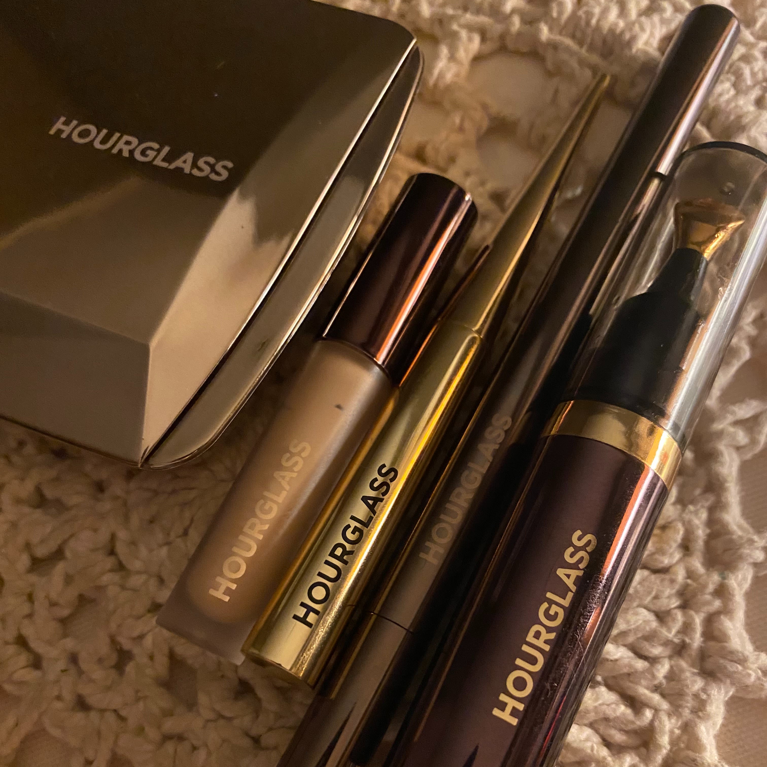 My under eyes look so tired when I’m working so much. I use one of two eye creams for daytime, either the Tata Harper Restorative Eye Crème, which is rich but still plays well with my eye makeup, or the Natura Bissé The Cure Sheer Eye. It’s the best tinted eye cream ever—just a little bit of coverage, but not too thick. I’ll use the It Cosmetics Bye Bye Under Eye Concealing Pot on top if I want any more. I usually don’t leave the house without blush, and I have all the shades of the Tata Harper Volumizing Lip and Cheek Tint. If I’m doing a little quick thing, I’ll finish by mixing all the shades in the Hourglass Ambient Lighting Palette. That thing is amazing.”