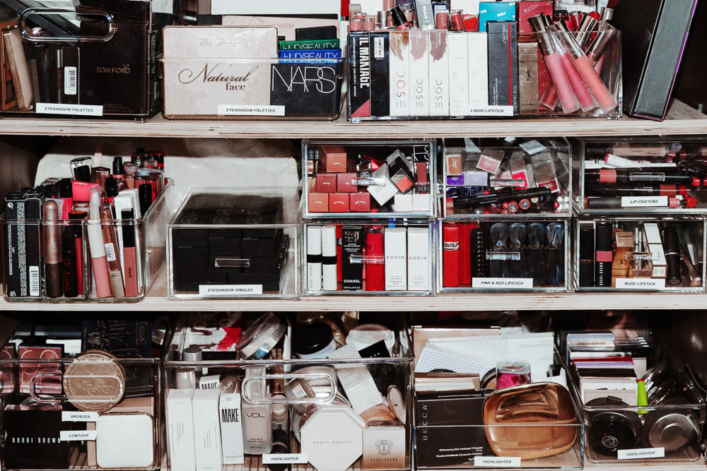 Now that you’ve figured out your closet/curtain/wardrobe situation, you’ll need to do a bit of beauty product editing. The tubes that you haven’t opened in years have got to go. And do you really need that matte lippie that’s collecting dust? It’s lipstick, not a signed Babe Ruth card! Once your garbage runneth over, get to grouping: hair, skincare, makeup, body, fragrance, nails. Easy enough; let’s move to the next step.