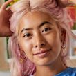 I’m so loyal to Colleen because at this point, we’ve been doing it for so long. She knows that I like a dusty pink that’s not too purple. We don’t talk about it, we just do it. My first appointment took like seven hours, because I had to go platinum before I went pink. But now I get my roots done and the pink touched up once a month. If I don’t see Colleen for a while, then I’ll use an Uberliss Bond Sustainer in Pink Rose to re-up on the pink. I wash my hair twice a week with purple R+Co Sunset Blvd Shampoo, which keeps the pink from getting yellow. Then I actually don’t use conditioner, because I use K18. That has been such a game changer for my hair. I thought that bleaching it for so many years would leave it brittle, but it’s totally fine. It honestly feels so soft and shiny. I’ve tried a good amount of hair masks—my favorite is the Amika one because it smells so good, and I do use their Supernova Hair Moisturize and Shine Cream every time after I shower. But if I want to actually repair my hair and make it feel better, it’s the K18.