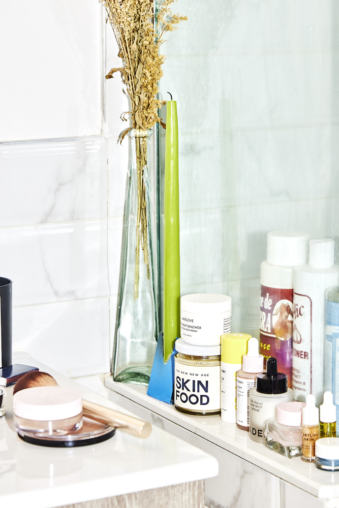 I don’t really wash at night. I know you’re supposed to, but I’m just so tired. Instead, I’ll use a witch hazel toner and then put on Glow Recipe’s Watermelon + AHA Glow Sleeping Mask. That has been really good for me. I recently realized that if I want my breakouts to stop, I cannot eat dairy. I’m trying to cut it out, but I love it so much, so the middle ground is just trying to be more intentional about it. If I’m going to eat the cheese, I have to acknowledge it and not get confused when I break out later. And I have to use the PCA Skin Advanced Treatment Acne Gel. My friend Rinny suggested it, and this stuff has been amazing for me. I put it on overnight, and the next day my breakouts are so much better. The other thing I’m learning is that I just need to leave my skin alone. I’m so bad about picking, and I know that’s why I have hyperpigmentation on my cheeks and my forehead, and some keloid scars on my chin. It’s helped me feel like I don’t need to wear makeup to the grocery store.