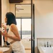 I don’t use many heat tools, but I love styling my hair with Amika’s Blowout Babe Thermal Brush. I discovered it because it went viral on TikTok. I really appreciate how easy it is to use, and it’s less damaging than a straight iron because you’re not clamping down your hair together. Still, I use the Shine & Protect Hair Cream Oil from True Botanicals every night for added protection. And I love a good teasing spray. I usually use R+Co’s Zig Zag Root Teasing + Texture Spray. It’s lightly tinted, which I love because most hair products make your hair look super white, and with my dark hair, you can really see them.