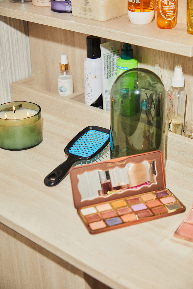 Every skincare product I use was recommended by my dermatologist. I don’t always know what it’s doing honestly, but if she tells me to do it, I do it. So when I’m getting ready to put on makeup, I always grab the same three products: Alastin Restorative Skin Complex, Alastin Ultra Light Moisturizer, and SkinCeuticals Phyto A+ Brightening Treatment Lightweight Moisturizer. Hydration is always the goal. The same goes for my body because I’m always in the sun and it can get a bit dry. The Vaseline Intensive Care Nourishing Moisture Lotion is so good. It leaves my skin very glowy and makes it look very rich. For an extra glow, I like to layer Baja Zen’s Coco Glow Body Glow Oily. Someone gave it to me for my birthday recently. It smells amazing, kind of like coconut and pineapple. You smell like a walking piña colada, in a good way. [Laughs]