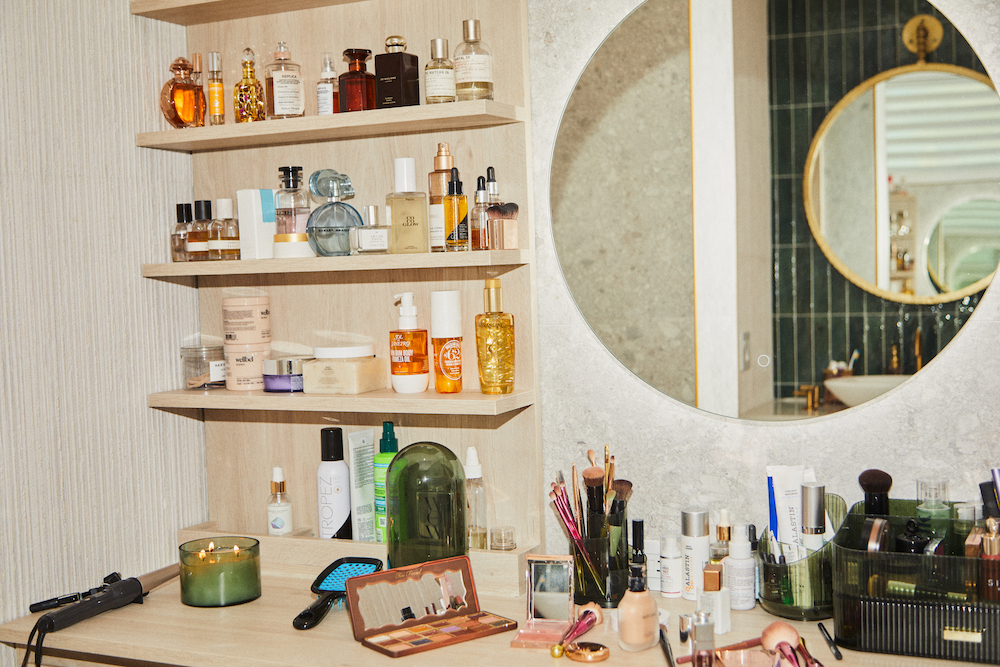 Recently, I’ve been going back and forth between two perfumes. Jo Malone’s Scarlet Poppy is so soft and cozy. If I want something stronger, I’ll go with Carolina Herrera’s Good Girl Blush. It’s also a warm floral, but it’s mixed with vanilla. It’s really long-lasting.