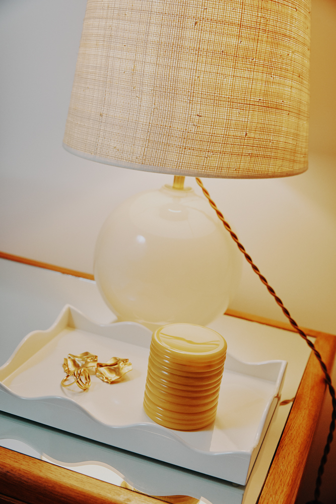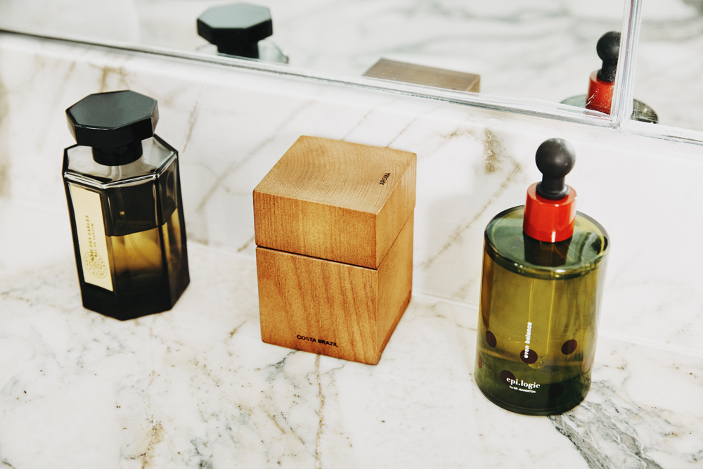 In an ideal world, I’m lighting a candle to set the mood for the night—but I usually don’t. I like Byredo Fleur Fantôme a lot, and of course, I have our Palm Heights candle, which has amber, too. Costa Brazil’s Jungle is the best candle ever. It’s so luxurious, vegan, and smells like the heart of the Amazon.”