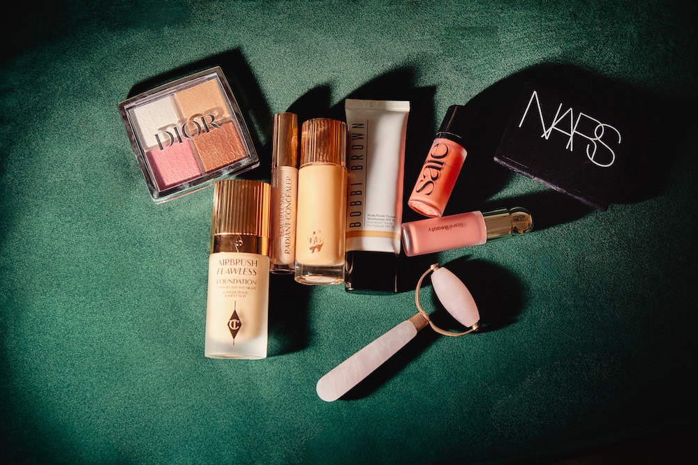 I usually start with the Charlotte Tilbury Beautiful Skin concealer in shade 4 under my eyes. If I’m doing a show, I might contour with her contour wand and layer foundation on top, but on more chill days, I’ll just use the Light Bobbi Brown bronzing powder as a subtle contour before going in with blush and highlighter.