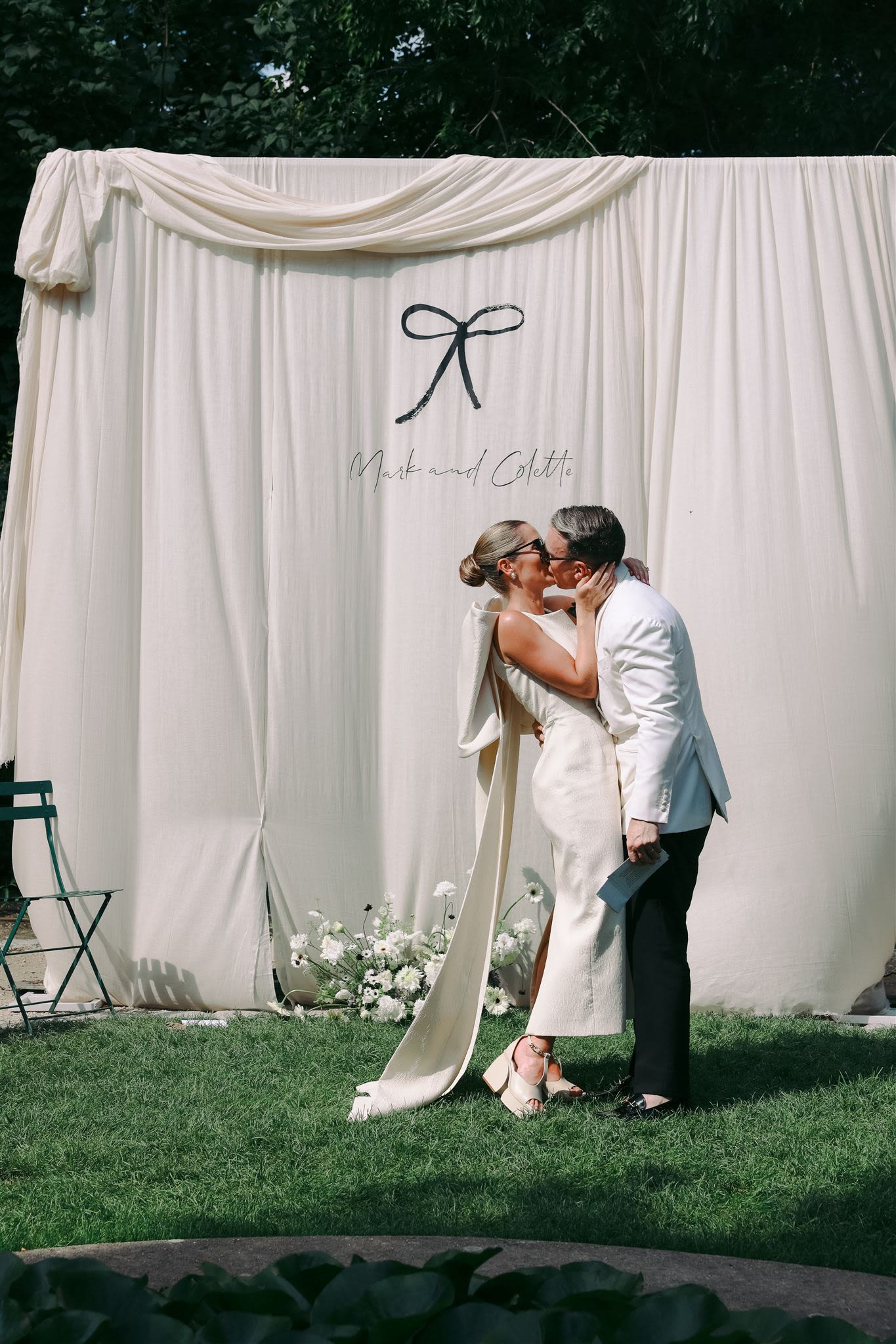 You shouldn’t wear white to a wedding. That’s generally true—unless you’re headed to Colette Laxton and Mark Curry’s wedding. The co-founders of skincare brand The Inkey List tied the knot in Paris as guests—instructed by the bride and groom—wore black and white for the black-tie affair. “When Mark and I first got together, we said we wanted to be ‘black and white’ with each other—transparent and honest. It’s also The Inkey List’s color palette because we’re a transparent brand,” Colette explains. “But it was funny—I had a few people message me asking, ‘Just to confirm… can I wear white?’” The bride herself wore an Emilia Wickstead gown and her signature red lip. Below, she shares every detail.
