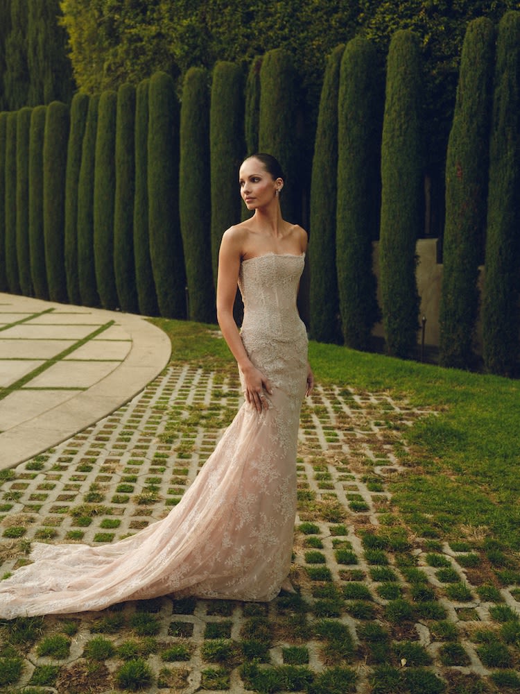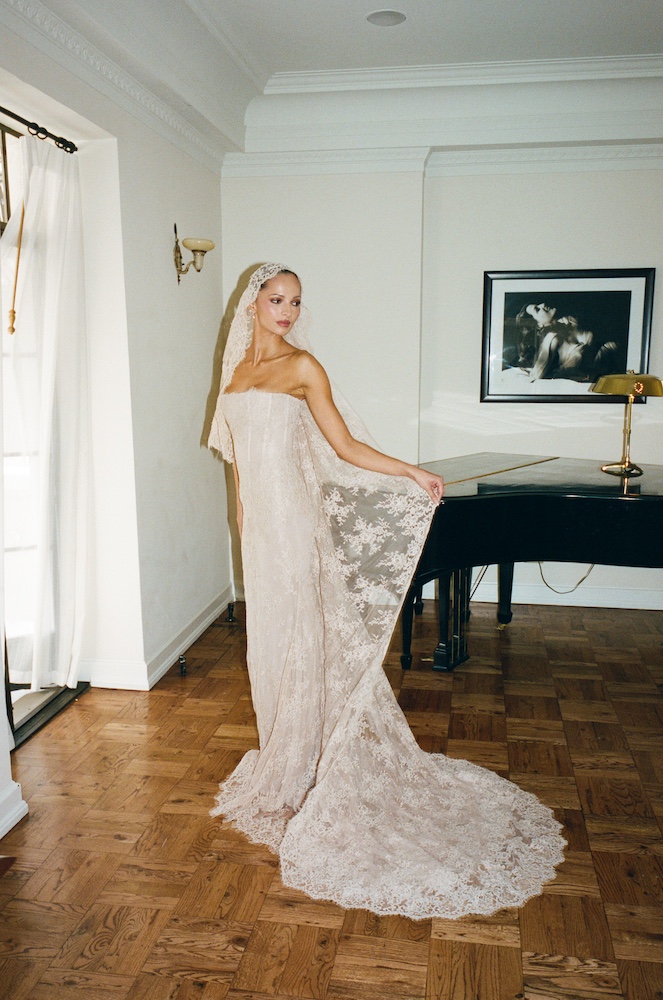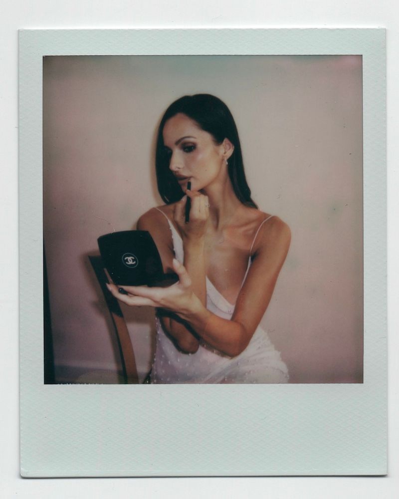 One of the best parts of wedding planning was deciding on multiple outfits that balanced traditional and modern—that’s why some of them were nude-y brown rather than white. In total, I had five outfits. The first was a white dress from Albus Lumen, an amazing Australian designer, with tiny pearls. I did my hair and makeup in that dress and just sat there looking pretty. Then I wore a Magda Butrym dress for portraits. Once I saw it, I knew it had to be part of the day. The main dress was from Kyha, another Australian designer. It was custom, and I worked on it with my stylist Georgina Downe. I didn’t wear a veil the first time around, so I definitely wanted one this time. Then I changed into a vintage blush Balenciaga Museum Re-Edition 1960s dress with YSL satin mules. The final dress was vintage Cavalli, which I wore for dinner and drinks with a few friends at the Chateau.