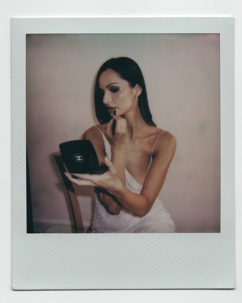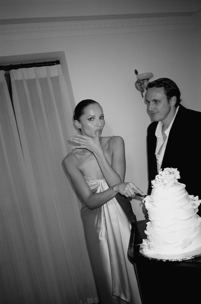 I grew up modeling and have had my makeup done every possible way, but I didn’t want anything too glam or heavy for my vow renewal. I still wanted to feel like me. Terezka Fraz did my makeup and hair—we’ve worked with her a lot for Heaven Mayhem, so she really understood my vision. We left my hair down for the first look and then slicked it back later, since I wished I’d worn it up for my first wedding. Neither look was super bridal, just very me. And then I wore Rosa Carnivora by Dries Van Noten as my scent. A friend gave it to me, and it’s very special. It smells like rose and vetiver, and the bottle is exactly my aesthetic: half zebra print, half pink.