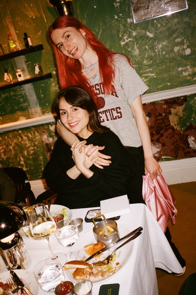 Now, we couldn’t just do this in New York—we wanted to think globally. So we hosted the first dinner last week at Le Veau d’Or on the Upper East Side, and a second just yesterday at Automat in London, co-hosted by the one and only Celia Burton. Guests at both places were greeted with a big fat ITG sticker that they had to slap on top of their iPhone lens. The idea of a room full of people overanalyzing their digital snaps didn’t sit right with us, but we’re not monsters; photos were still allowed! They’d just have to use one of the disposable cameras we passed around and wait a week for the results, just like the old days. The ’90s are back, no?