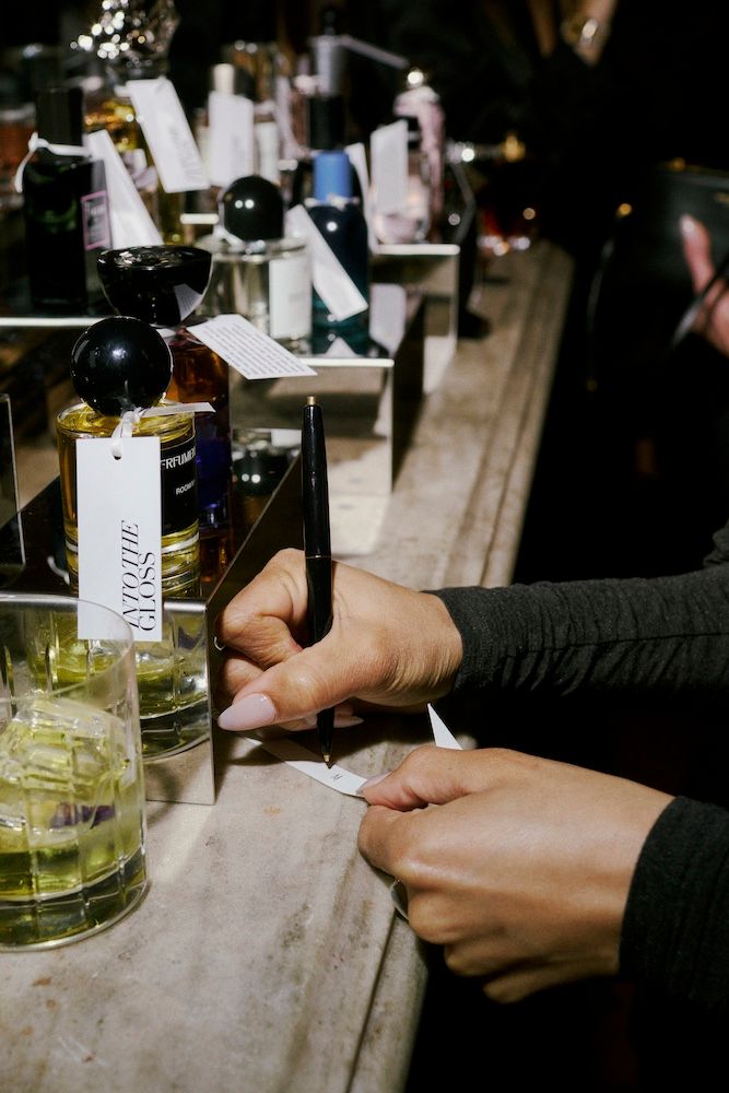 It started with the most basic idea: gather a bunch of interesting people and get them to wax poetic about the one beauty product they can’t get enough of. It would be kind of like a live, rapid-fire Top Shelf. Then, after hearing about everyone’s favorite something, they’d get to try that something out that night, and ultimately, go home with it. The idea felt central to what ITG is about: discovering beauty through the lived experiences of others. After deciding to narrow the category to fragrance, and inviting a bunch of ITG friends, we asked everyone to email their favorite perfume and a one-liner on why they liked it. Bear in mind that we only said we were inviting them to dinner. And the reason we were asking about a favorite fragrance? Never you mind, they’d find out later!