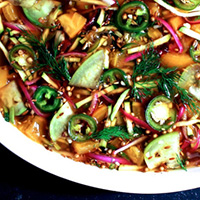 Grilled fish tacos with quick-pickled veggies and avocado-jalapeño crema—because it's hot out and we're hungry Read more