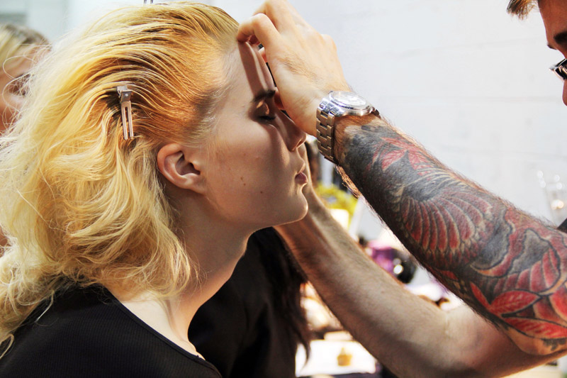 Orlando Pita (Phyto): The hair style follows the simple clean lines that are in Derek’s collection: I’m doing a super simple side part, low ponytail in the back, and it’s all very perfectly done—no hair out of place. Read more