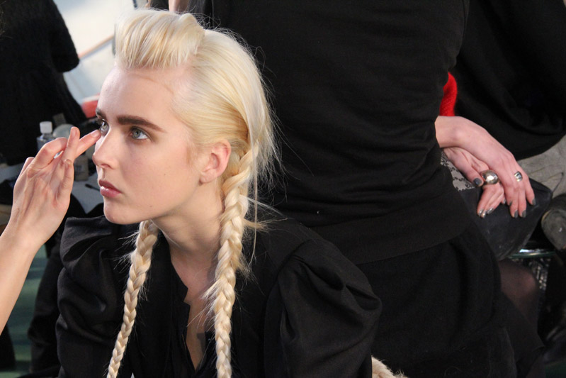 Snapped Jamie midway through Givenchy Spring 2011 hair and makeup. Read more