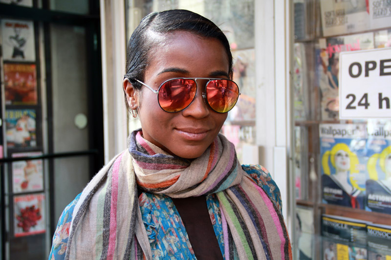 Carolina was a vision in an all-black Comme-type look, weaving through lower Broadway when I stopped her. How stunning is this girl? Read more